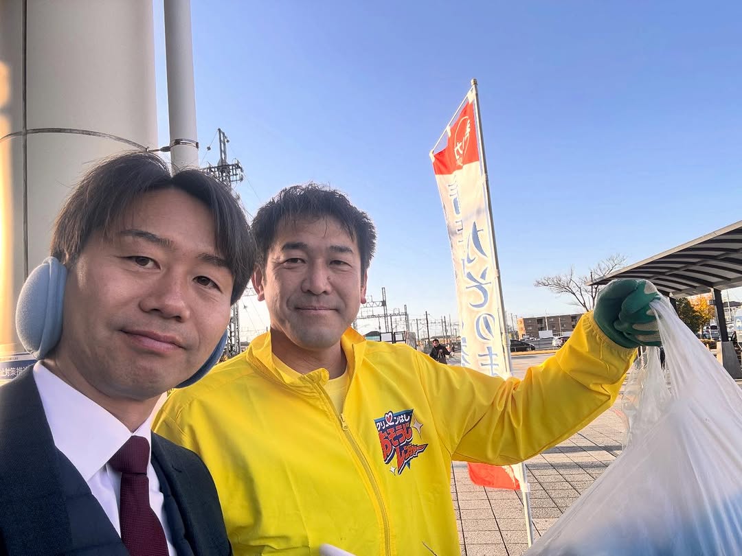 久喜市議会議員選挙に立候補する決意を固めた、新人菊地まさのりさんが朝の掃除をされておりました。素晴らしいですね。 お互い 新人同士 パシャリ!!