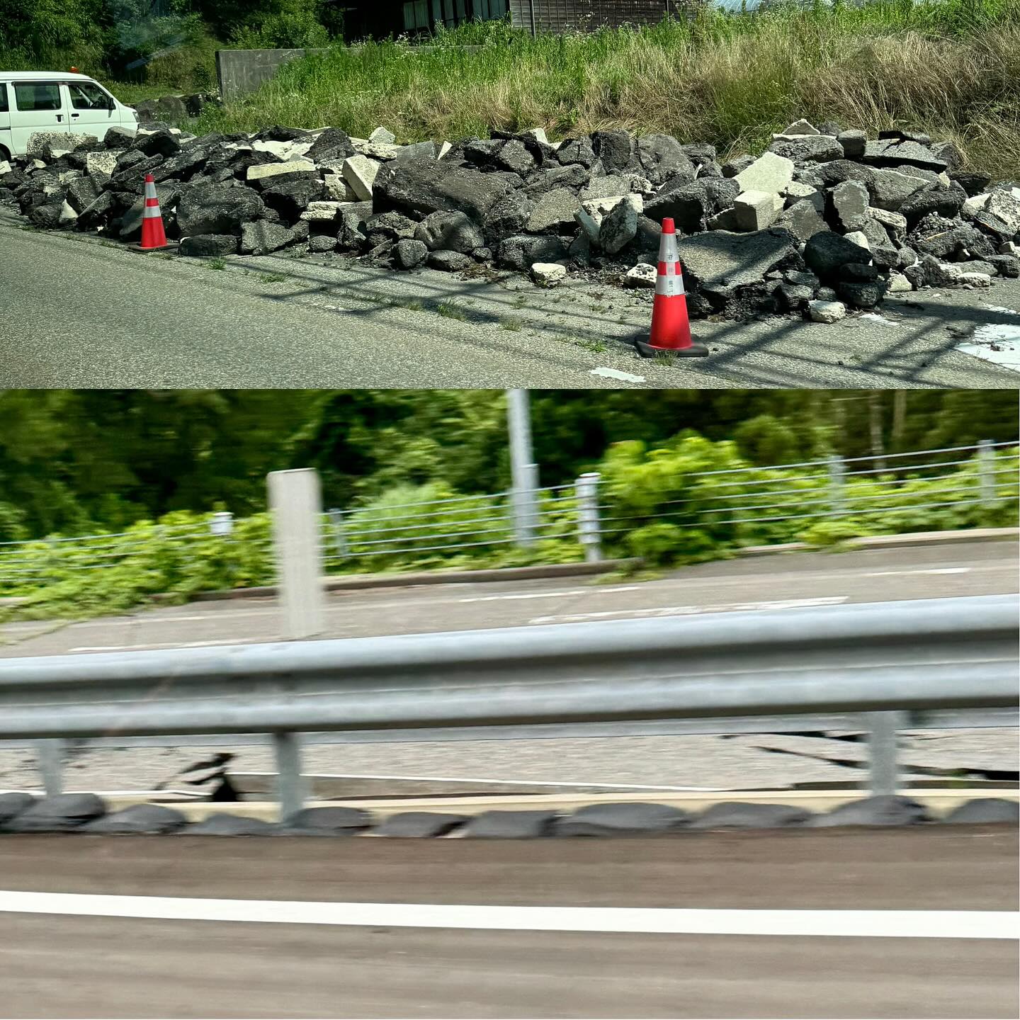 とにかく道が悪い。至る所に亀裂が入り高速も下りだけの復旧で登りの無い区間もまだありました。進まないわけです。