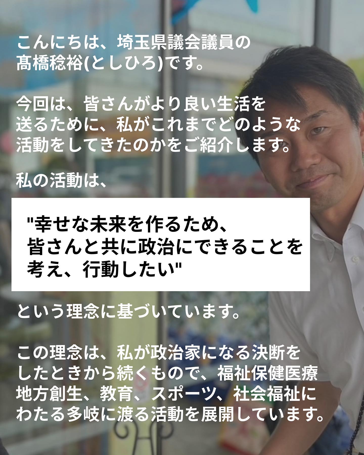 投稿をご覧いただきありがとうございます。埼玉県議会議員の高橋としひろです!