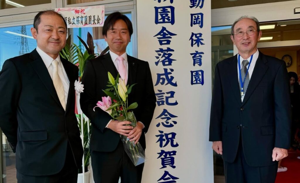 本日は、不動岡保育園 新園舎落成記念祝賀会に 参列致しました。 誠におめでとうございます🎊㊗️🎊 帰り際、理事長先生とお父様と写真 を撮らせていただきました。 ゆったりとした造りは 健やかに子ども達がすごせるものと確信致しました。 #保育 #加須... -