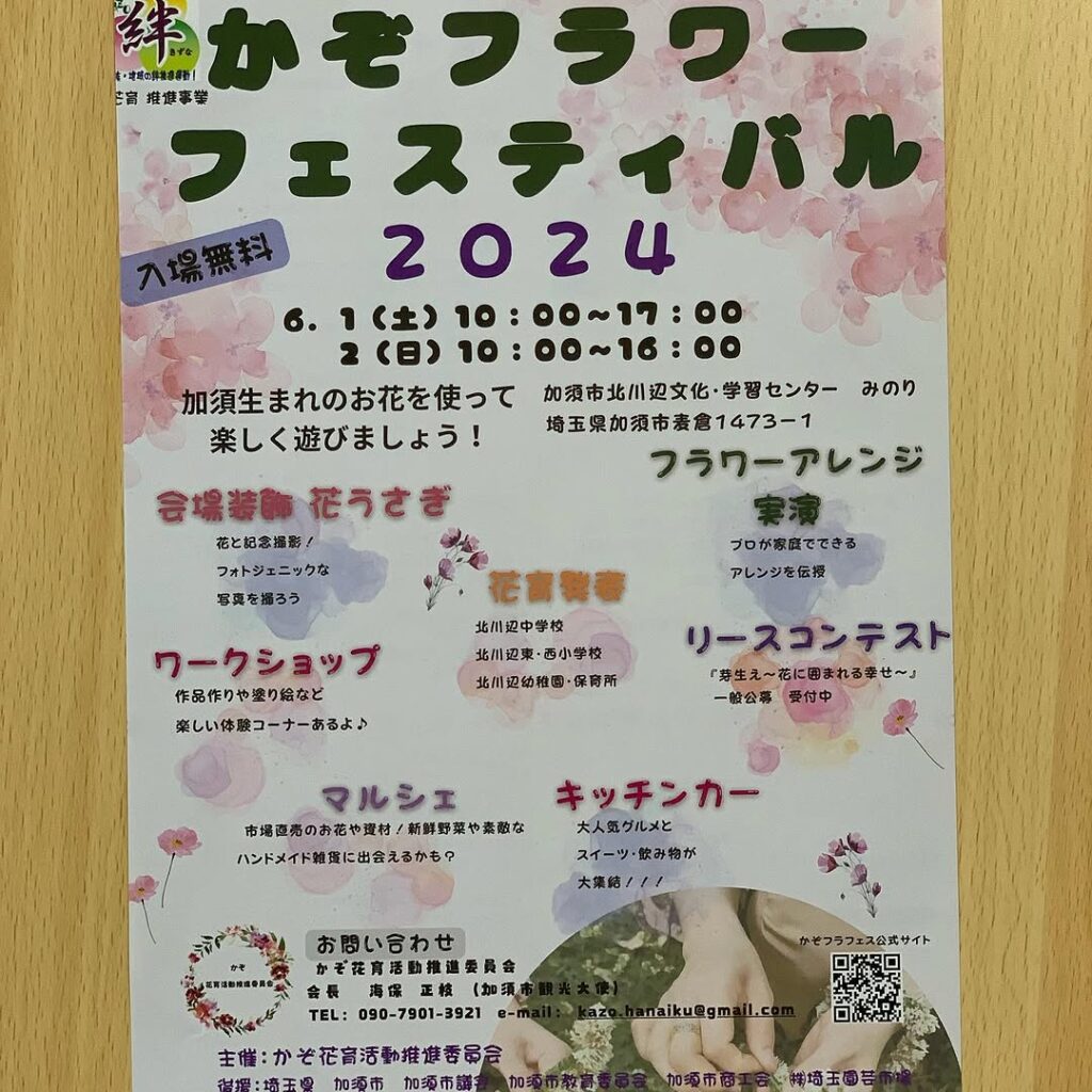 イベントを二つご紹介 いよいよ明日(6月1日)から2日間 フラワーフェスティバル開催です。 『花育』 花や緑に親しみ、 やさしさや美しさを感じる豊かな心を育む 昨年に増して キッチンカーもアクティビティも あるそうですよ😄 次は 明後日(6月2日)玉... -